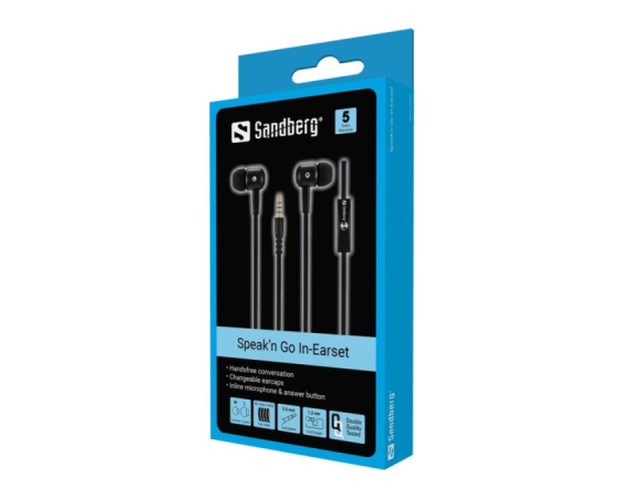 Podatki o pakiranju: 1x Sandberg Speak’n Go In-Earset, 2x para zamenljivih ušesnih nastavkov