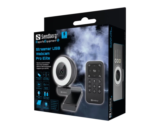 Podatki o pakiranju: 1x Sandberg Streamer USB Webcam Pro Elite spletna kamera, 1x daljinski upravljalnik, 1x adapter USB-A (ženski) na USB-C (moški), 1x čistilna krpa za lečo, 1x navodila za uporabo