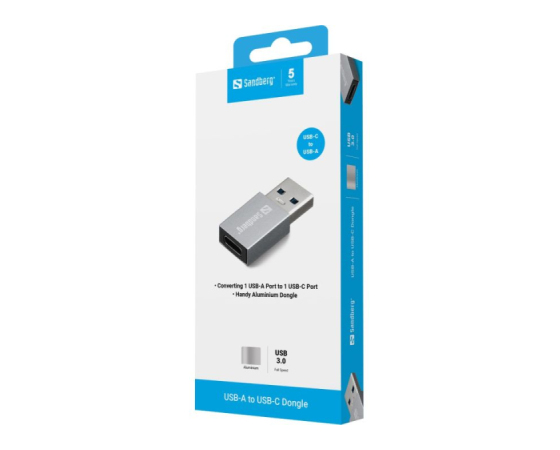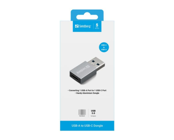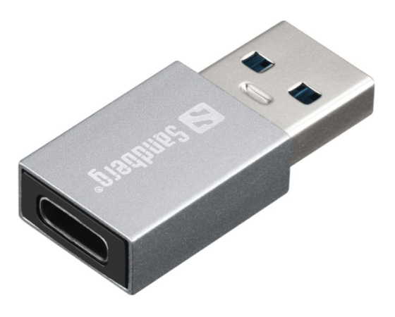 S Sandberg USB-A v USB-C Dongle adapterjem lahko na računalnik s priključkom USB-A povežete naprave s standardnim priključkom USB-C. To je lahko zunanji trdi disk, tiskalnik ali miška z vtičem USB-C.