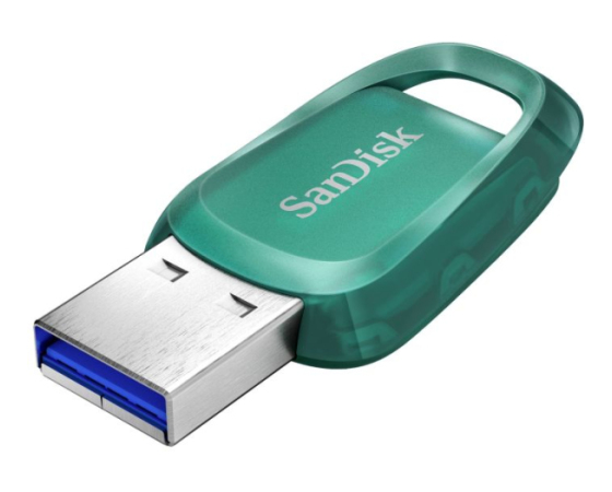 SanDisk Ultra Eco je vsestranski in zmogljiv USB ključ z USB-A priključkom, namenjen enostavnemu prenosu datotek med različnimi napravami. Zahvaljujoč standardu USB 3.2 Gen 1 omogoča visoke hitrosti prenosa, kar pospeši premikanje velikih dokumentov, fotografij in videov. Izdelan je iz več kot 70 % reciklirane plastike, tako da med proizvodnim procesom prihrani več kot 50 % emisij CO₂, sveže vode in energije. Ključ ima kompaktno zasnovo, reža pa omogoča priročno nošenje s ključi in obeski. Vključuje ponudbo za programsko opremo RescuePRO Deluxe za obnovitev podatkov, ki lahko pomaga pri obnovi slik, izbrisanih po nesreči (potreben je prenos in registracija). USB ključ je idealen za shranjevanje, varnostno kopiranje in prenašanje podatkov med vašimi napravami.