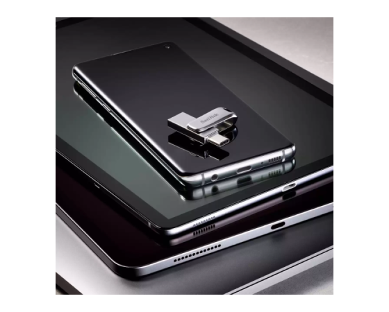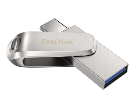 SanDisk Ultra Dual Drive Luxe je 2-v-1 ključek, ki vam omogoča enostaven prenos datotek med tablico ali računalnikom z USB-C ali USB-A priključkom. Enostavno ga priključite, da sprostite prostor na svojih napravah ali samodejno varnostno kopirate fotografije, videoposnetke, glasbo, dokumente in stike. Dvosmerna vrtljiva zasnova v kakovostnem kovinskem ohišju ščiti priključke in vključuje režo za obesek, da lahko ključek vzamete s seboj kamor koli.