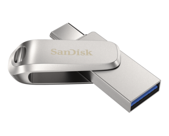 SanDisk Ultra Dual Drive Luxe je 2-v-1 ključek, ki vam omogoča enostaven prenos datotek med tablico ali računalnikom z USB-C ali USB-A priključkom. Enostavno ga priključite, da sprostite prostor na svojih napravah ali samodejno varnostno kopirate fotografije, videoposnetke, glasbo, dokumente in stike. Dvosmerna vrtljiva zasnova v kakovostnem kovinskem ohišju ščiti priključke in vključuje režo za obesek, da lahko ključek vzamete s seboj kamor koli.