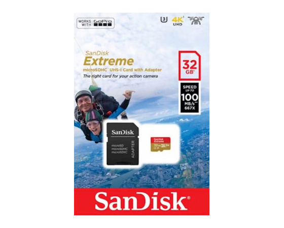 SDHC SANDISK MICRO 32GB EXTREME KAMERA/DRON, 100/60MB/s, UHS-I Speed Class 3, V30, adapter