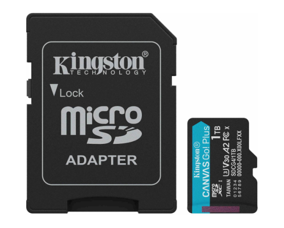 SDXC KINGSTON micro 1TB Canvas GO Plus, 200/160MB/s, C10, UHS-I, U3, V30, A2, adapter