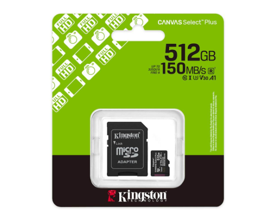 SDXC KINGSTON MICRO 512GB CANVAS SELECT Plus, 150MB/s, C10, UHS-I, U3, V30