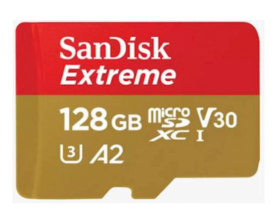 SDXC SANDISK MICRO 128GB EXTREME, 190/90MB/s, A2, UHS-I, V30, U3, C10, adapter
