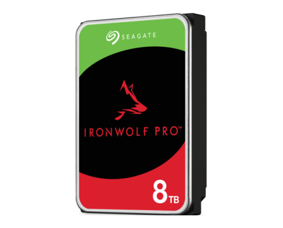 Trdi disk Seagate ST8000NT001 iz serije IronWolf Pro ponuja kapaciteto 8 TB in je optimiziran za NAS sisteme z do 24 režami. Disk uporablja tehnologijo AgileArray™, ki vključuje senzorje rotacijskih vibracij (RV) ter IronWolf Health Management za spremljanje stanja diska. Namenjen je neprekinjenemu delovanju, podpira delovno obremenitev do 550 TB na leto in omogoča visoko zanesljivost pri večuporabniških in profesionalnih rabeh.