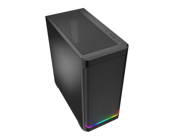 Funkcionalno in elegantno: AK4 RGB Strip ima veliko prostora za sodobno strojno opremo in prostor za do enajst ventilatorjev ter se ponaša s trdnim, klasičnim videzom. Kot subtilen kontrast ima sprednja plošča integriran RGB trak vzdolž dna zračno prepustne mrežaste rešetke, ki zagotavlja vizualni poudarek v 16,7 milijona barvah. Na zgornji plošči ohišje zaokrožujejo sodobni priključki za široko paleto mobilnih in perifernih naprav.