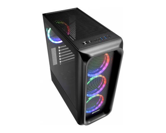 Ohišje ATX TK5M RGB zmaguje v vseh kategorijah: zračno prepustna mrežasta sprednja plošča in štirje vnaprej nameščeni 120 mm RGB LED ventilatorji zagotavljajo dober rezultat za hlajenje strojne opreme. V/I plošča je opremljena z dvema vhodoma USB 3.0 in ima celo vrata za USB Type-C 3.2 Gen 2. Stranska plošča iz kaljenega stekla omogoča globok vpogled v notranjost ohišja, ki jo lahko živo osvetlite s pomočjo 4 -port RGB krmilnik s 14 izbirnimi načini osvetlitve.