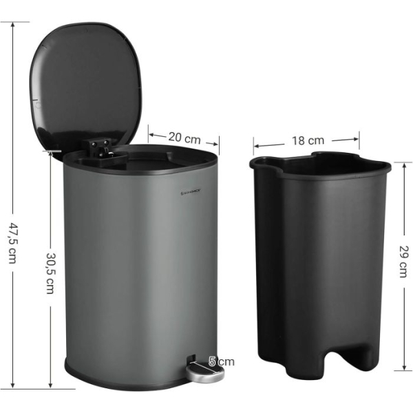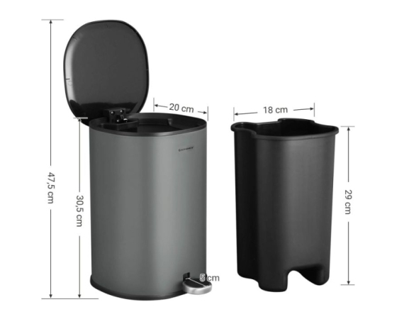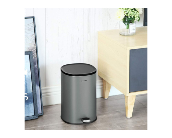 [Slog v kopalnici]: Zakaj bi moral koš izgledati neurejen? S svojo sivo-črno barvno kombinacijo in elegantnim dizajnom bo ta 5-litrski pedalni koš modni dodatek vaši kopalnici.
