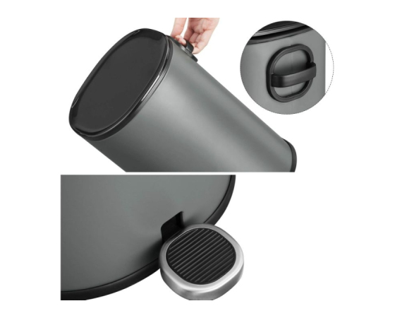 [Pametna rešitev]: Pedalni koš, ki ga upravljate z nogo, omogoča higienično uporabo brez dotika pokrova z rokami. Prav tako preprečuje radovednim hišnim ljubljenčkom, da bi ga prevrnili. Ko stopite na pedal, se pokrov odpre, kar omogoča enostavno ločevanje odpadkov.