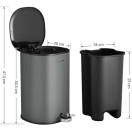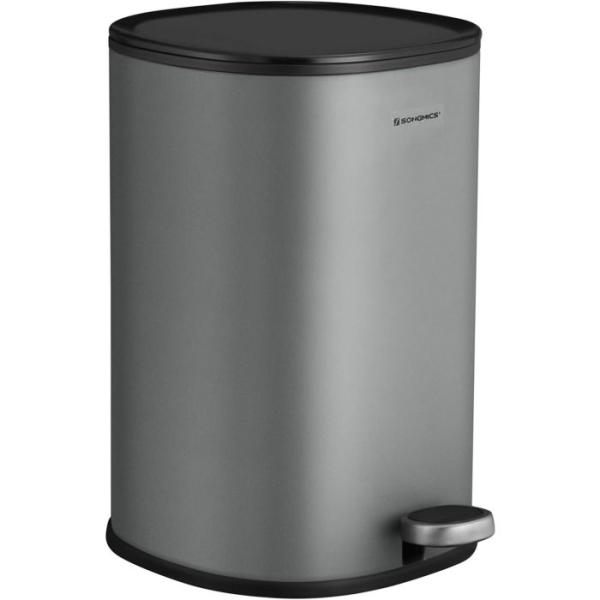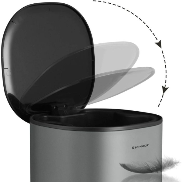 SONGMICS 5-litrski pedalni koš iz jekla z notranjo posodo in ročajem na pokrovu, tesnilni pokrov, za kopalnico in stranišče, siva in črna, model LTB14GS