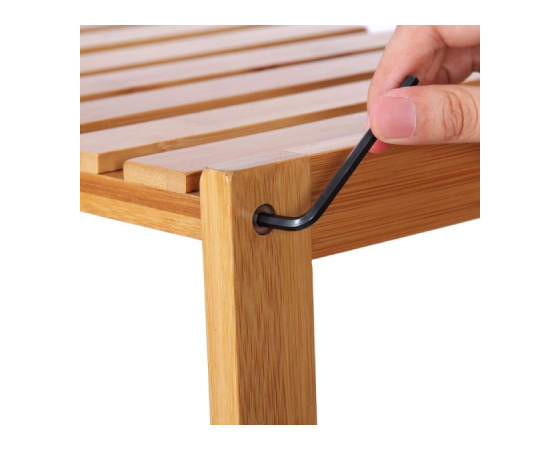 S privlačnim bambusovim videzom se lepo zlije z vsakim prostorom. Vsi vijaki so skriti v bambus, robovi pa so polirani in zaobljeni, kar preprečuje poškodbe in zagotavlja varno uporabo.