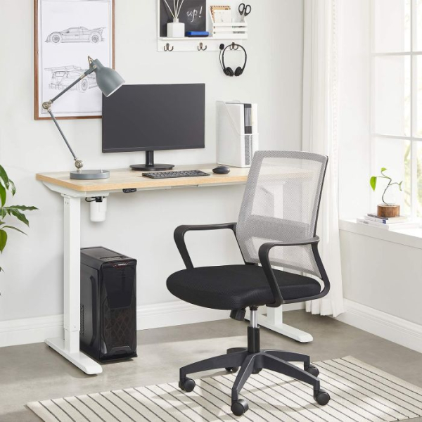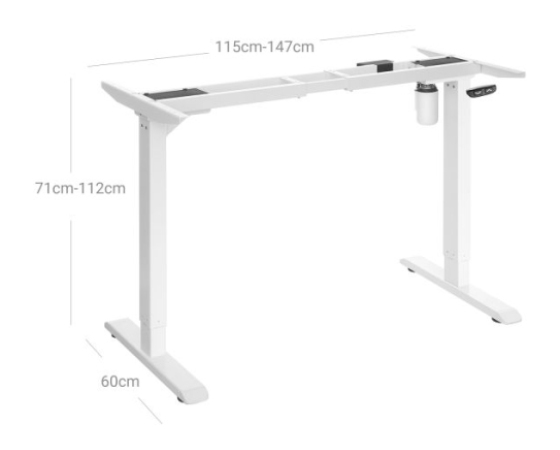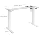 SONGMICS Električni okvir stoječe mize z motorizirano nastavitvijo višine, nastavljiva dolžina, jeklo, bela LSD010W01V1