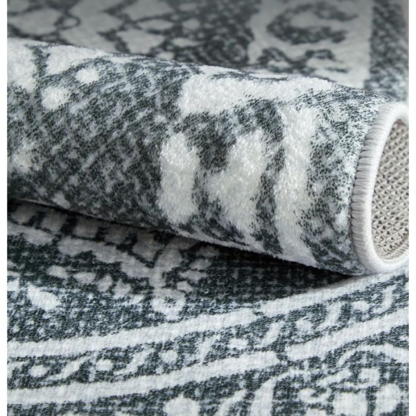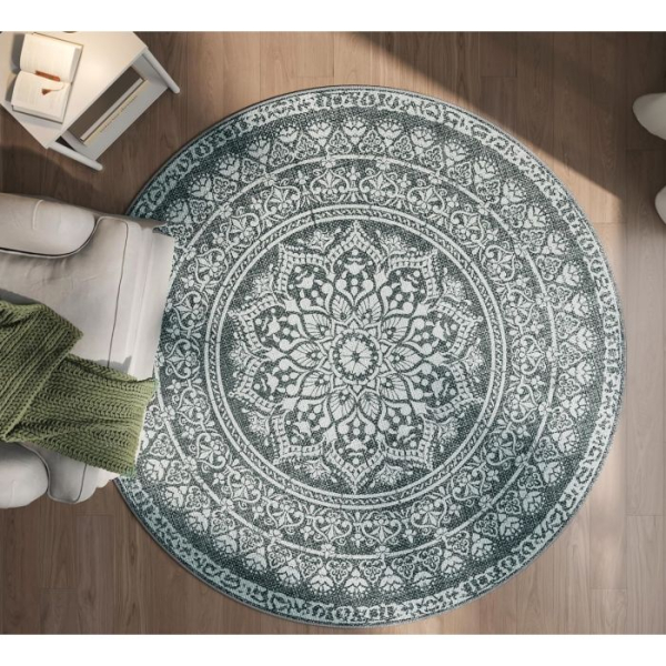 SONGMICS HOME Okrogla Preproga, 160 cm, Preproga za Dnevno Sobo, Nedrseča, Mehka Dekoracija, za Dnevno Sobo, Spalnico, Pralna v Pralnem Stroju, Boho Slog, SIVA