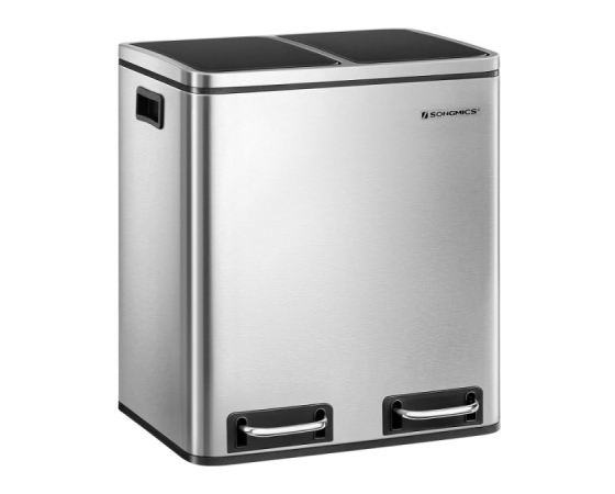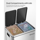 SONGMICS Koš za recikliranje, 2 x 15L jekleni koš za smeti, stopničast koš z notranjim vedrom in ročaji, za kuhinjo, mehko zapiranje, neprepusten, srebrno in črno LTB30H