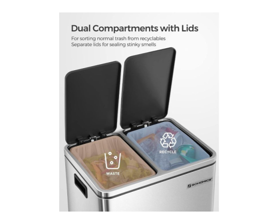 Kaj dobite: Sodoben koš za smeti z 2 predaloma s prostornino 15 l, zato lahko preprosto razvrščate odpadke za recikliranje in imate čist dom.