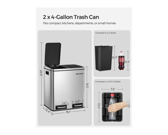 Vedro v košu: priloženi sta 2 odstranljivi notranji vedri s priročnimi ročaji, zato ju lahko dvignete in enostavno očistite, če se vreča za smeti slučajno razbije in razlije