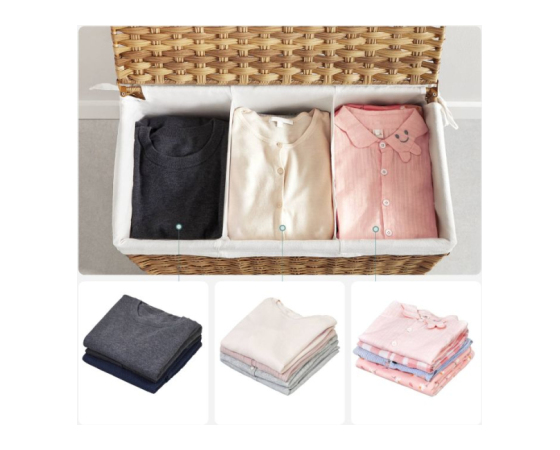 Koš za perilo je velik 66 x 33 x 60 cm in ima veliko prostornino 140 l. V 5 predalčkih lahko razvrstite svetla, temna in občutljiva oblačila za lažje čiščenje in shranjevanje.