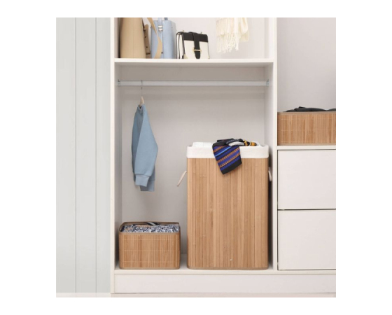 Zaradi 17 mm širokih bambusovih trakov je koš za perilo izjemno trpežen, stabilen in vzdržljiv (največja obremenitev 20 kg). Ko je ne uporabljate, jo lahko zložite in shranite na prostorsko varčen način