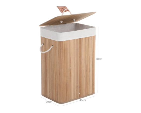 Koš za perilo s stranicami 40 x 30 x 60 cm ponuja veliko prostora (72 l) za shranjevanje brisač, oblačil in posteljnine. Zaradi svoje vitke oblike zavzame malo prostora na tleh.
