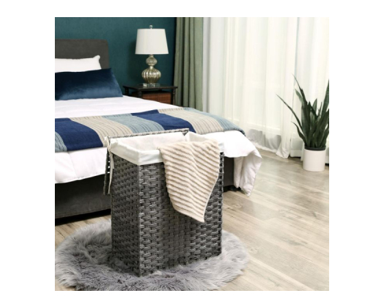 KAJ DOBITE: Ročno pleten koš za perilo z odstranljivo podlogo in stranskimi ročaji, ki je primeren za shranjevanje perila zunaj vidnega polja ali kot škatla za shranjevanje.