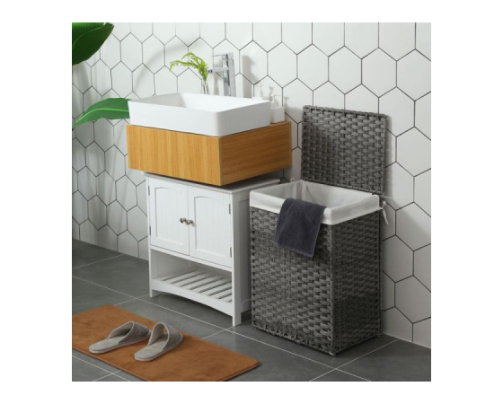 KOMPONENTA ZA KOPALNICO: Koš za oblačila brez skrbi postavite, kamor želite; trpežen sintetični ratan je vodoodporen, stabilno kovinsko ogrodje pa je odporno na rjo, zato je idealen sopotnik tudi za vlažne kopalnice.
