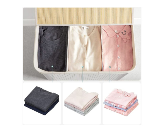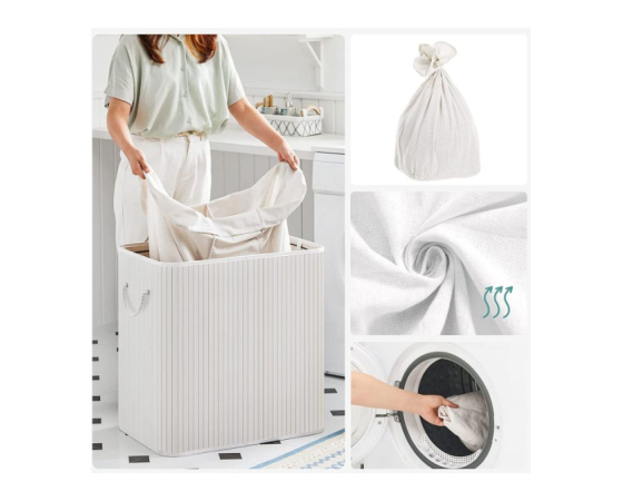 Koš za perilo je velik 60 x 40 x 61,5 cm (d x š x v) in ima veliko prostornino 150 l za vaša oblačila, brisače in posteljnino. S tremi razdelki lahko razvrstite oblačila različnih barv.