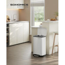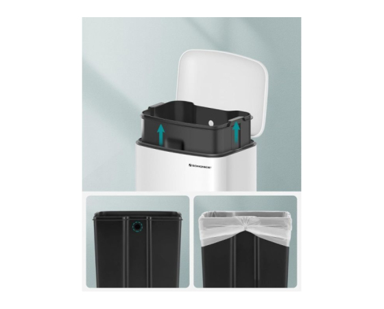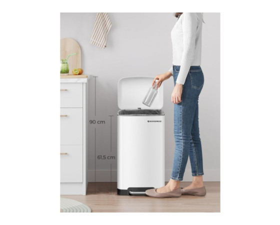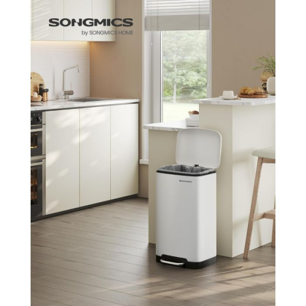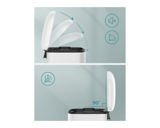 Zakaj bi koš za odpadke kazil izgled vaše kopalnice ali kuhinje? SONGMICS 30-litrski kovinski koš v beli barvi z minimalističnim dizajnom se odlično poda v sodoben dom. Kljub kovinskemu ohišju deluje nežno – zahvaljujoč mehkemu mehanizmu se pokrov zapira počasi in tiho. Ko izvajate večje čiščenje, lahko pokrov ročno pustite odprt – kasneje ga zaprete z rahlim pritiskom. Notranje plastično vedro s stranskimi ročaji je snemljivo in omogoča enostavno praznjenje ter čiščenje. Dodatna odprtina v notranjosti zadrži plastično vrečko na mestu, tudi če se raztrga. Pametna rešitev za red in svežino brez neprijetnih vonjav – tudi ob nepričakovanem obisku prijateljev.