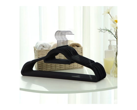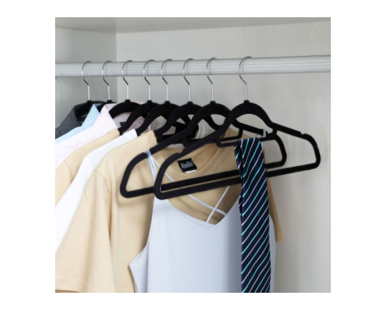 [Varčevanje s prostorom] Vsak žametni obešalnik ima tanek profil, zato lahko v istem prostoru v omari obesite več oblačil; osrednjo palico lahko uporabite za šale ali kravate.