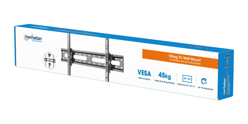 Stenski nagibni TV nosilec 37''-70'' MANHATTAN, 45kg, naklon 0° do -12°, črne barve