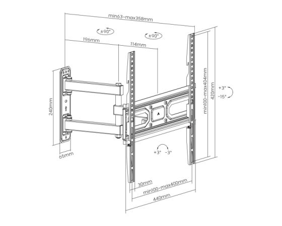 Stenski TV nosilec roka 32''-55'' MANHATTAN, 35kg, enojna roka, naklon +10 do -15°, črne barve