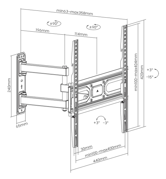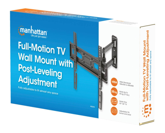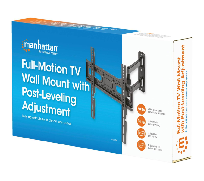 Stenski TV nosilec roka 32''-55'' MANHATTAN, 35kg, enojna roka, naklon +10 do -15°, črne barve - 462419