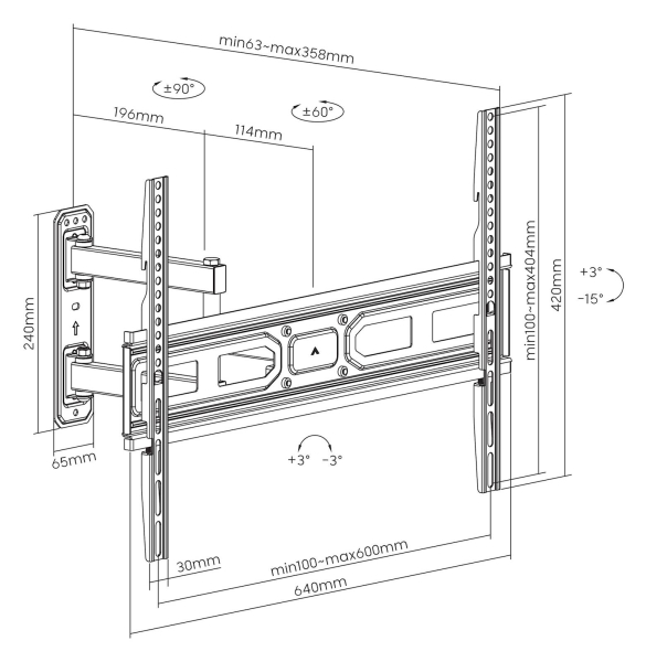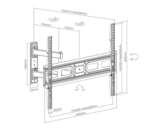 Stenski TV nosilec roka 37''-70'' MANHATTAN, 35kg, enojna roka, naklon +10 do -15°, črne barve - 462426