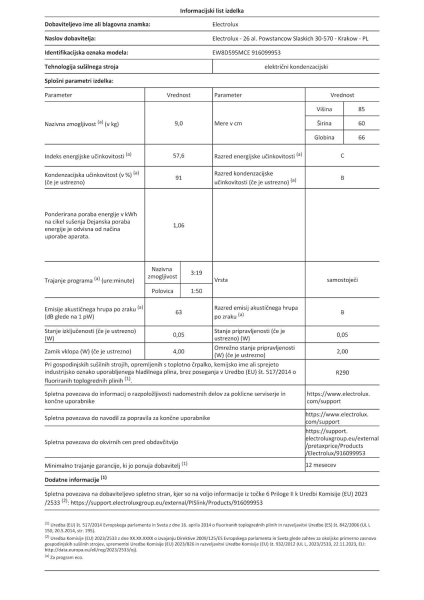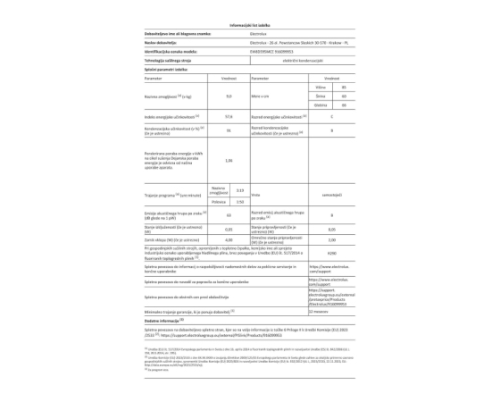 Sušilni stroj Electrolux EW8D595MCE, inverter, 9kg