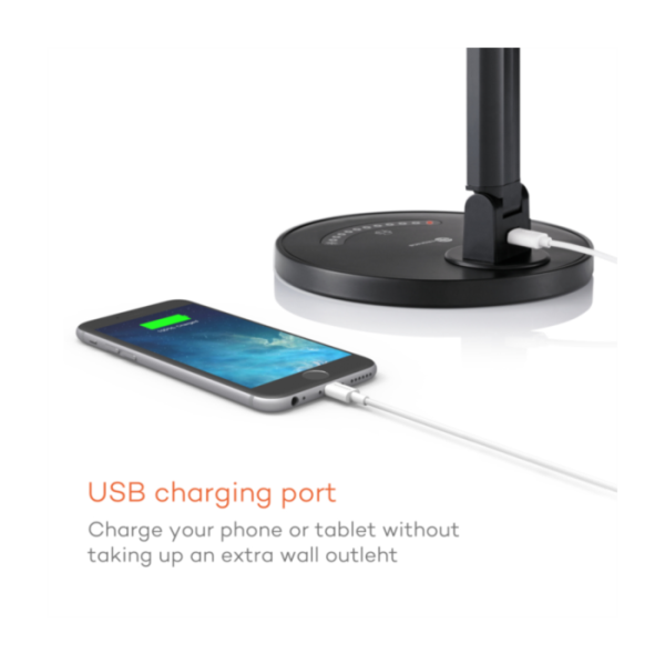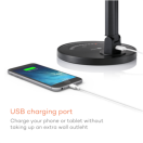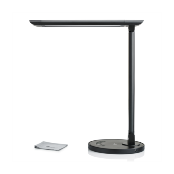 - Tehnologija: LED - Barva: Črna - Material: Plastika, aluminij - Maksimalna moč: 12 W - Napajanje: napajalni kabel(vključen) 230V - Stopnja svetlosti: 11 stopenj, touch display - USB port: Da, 5V/1A - Indeks barvne reprodukcije: 90.00 - Svetilnost: 410lm - Življenska doba: 15 let - Teža izdelka: 1,3kg - Dimenzije: 44,4 x 1,8 x 8,6cm