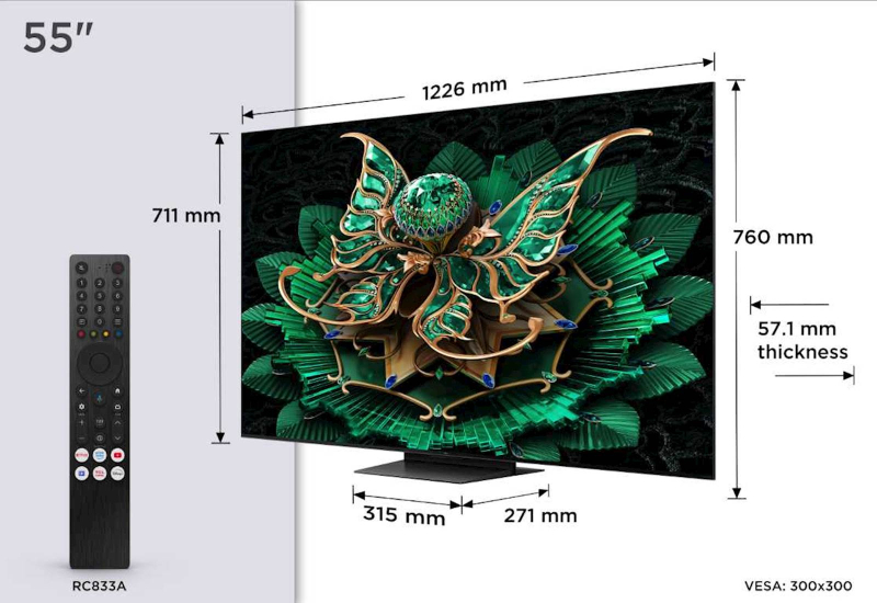TCL 4K QD-Mini LED HDR PREMIUM 55C71K, Google TV, 144Hz, Ozvočeno z Bang & Olufsen