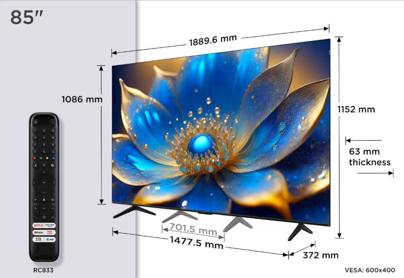 TCL 4K QLED TV 85P71K, Google TV,Onkyo zvok z Dolby Atmos