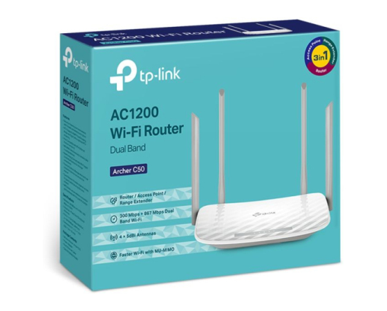TP-LINK Archer C50 podpira Wi-Fi standard 802.11ac, ki je 3-krat hitrejši od brezžične hitrosti N in omogoča kombiniran prenos podatkov do 1.2Gbps.