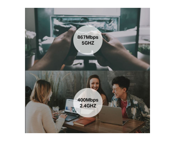 Končna hitrost Wi-Fi - brezžična hitrost AC1300 (400 Mb / s v pasu 2,4 GHz in 867 Mb / s v pasu 5 GHz) z naslednjo generacijo Wi-Fi - 802.11ac
