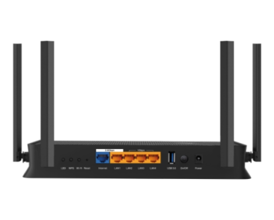 2× 2,5G vrata: 1× 2,5 Gbps WAN vrata, 1× 2,5 Gbps LAN vrata in 3× 1 Gbps LAN vrata ponujajo visoke hitrosti prenosa podatkov.