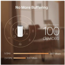 | Advanced Functions | ● Router/ Access Point Mode ● Optional Ethernet Backhaul ● Guest network ● TP-Link Mesh Technology: MU-MIMO Auto Path Selection Self-Healing AP Steering Band Steering Beamforming |