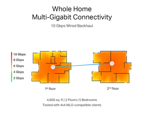 Deco BE85 v prvem nadstropju ostaja enak kot pri žičnem omrežnem prenosu. Zaradi sten in stropa med nadstropjema pa središče drugih Deco BE85 prejme približno 3,5 Gbps , medtem ko hitrost preostalega dela hiše doseže 3-3,5 Gbps