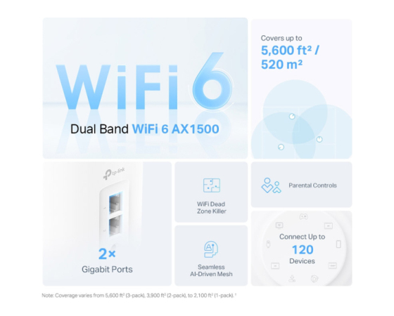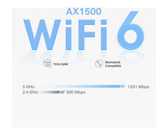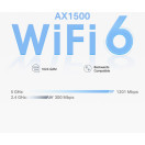 | Hitrost: | AX1500, 5 GHz: 1201 Mbps (802.11ax), 2.4 GHz: 300 Mbps (802.11n) |