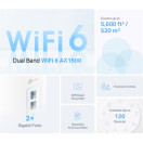 - Hitrejše povezave: Wi-Fi 6 do 1500 Mbps - 1201 Mbps pri 5 GHz in 300 Mbps pri 2,4 GHz.