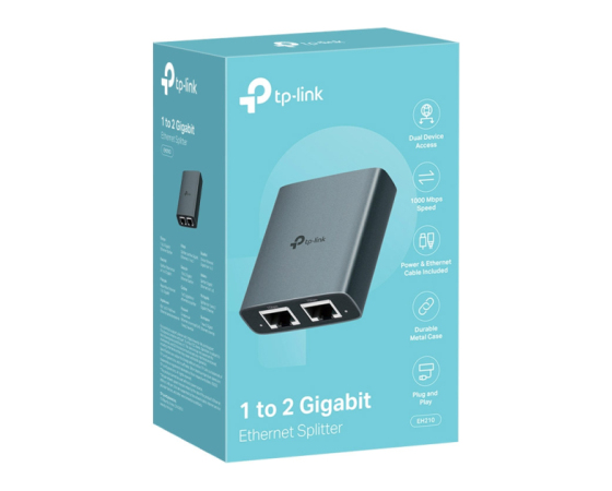 Z razdelilcem EH210 preprosto razširite svojo žično omrežno povezavo in hkrati povežite dve napravi z gigabitno hitrostjo. Kompaktna zasnova, kakovostni materiali in enostavna uporaba ga naredijo idealnega za dom, pisarno ali igralne postavitve.