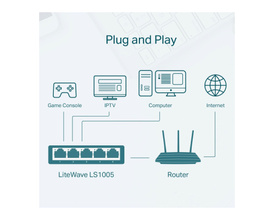 | Vsebina paketa: | 5-Port 10/100Mbps Desktop Switch, napajalnik, navodila |