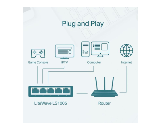 5 × 10/100Mbps samodejno pogajalska RJ45 vrata, ki podpirajo Auto-MDI / MDIX