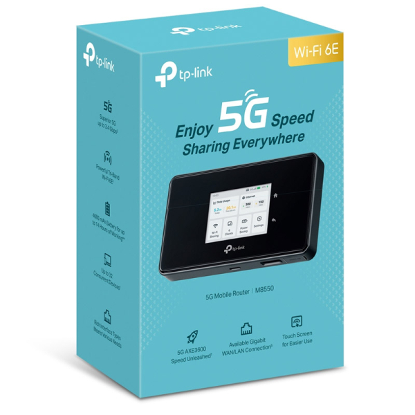 M8550 je zasnovan za mobilnost - od poslovnih poti do počitnic. Z zmogljivimi antenami, 5G podporo in Wi-Fi 6E tehnologijo zagotavlja stabilno povezavo v vseh okoljih.