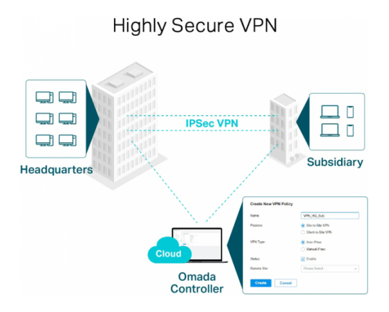 TL-ER605 podpira različne VPN protokole vključno z IPsec/OpenVPN/L2TP/PPTP VPN načini in lahko upravlja tudi s prehodnim prometom. Vgrajen strojni NAT pogon omogoča usmerjevalniku podporo, poleg tega pa upravlja z 20? LAN-to-LAN IPSec, 16? OpenVPN, 16? L2TP, and 16? PPTP VPN connections. LAN napredne VPN funkcije vključujejo DES/3DES/AES128/AES192/AES256 enkripcijo, MD5/SHA1 avtentifikacijo, NAT Traversal(NAT-T), Dead Peer Detection(DPD), Perfect Forward Secrecy(PFS).